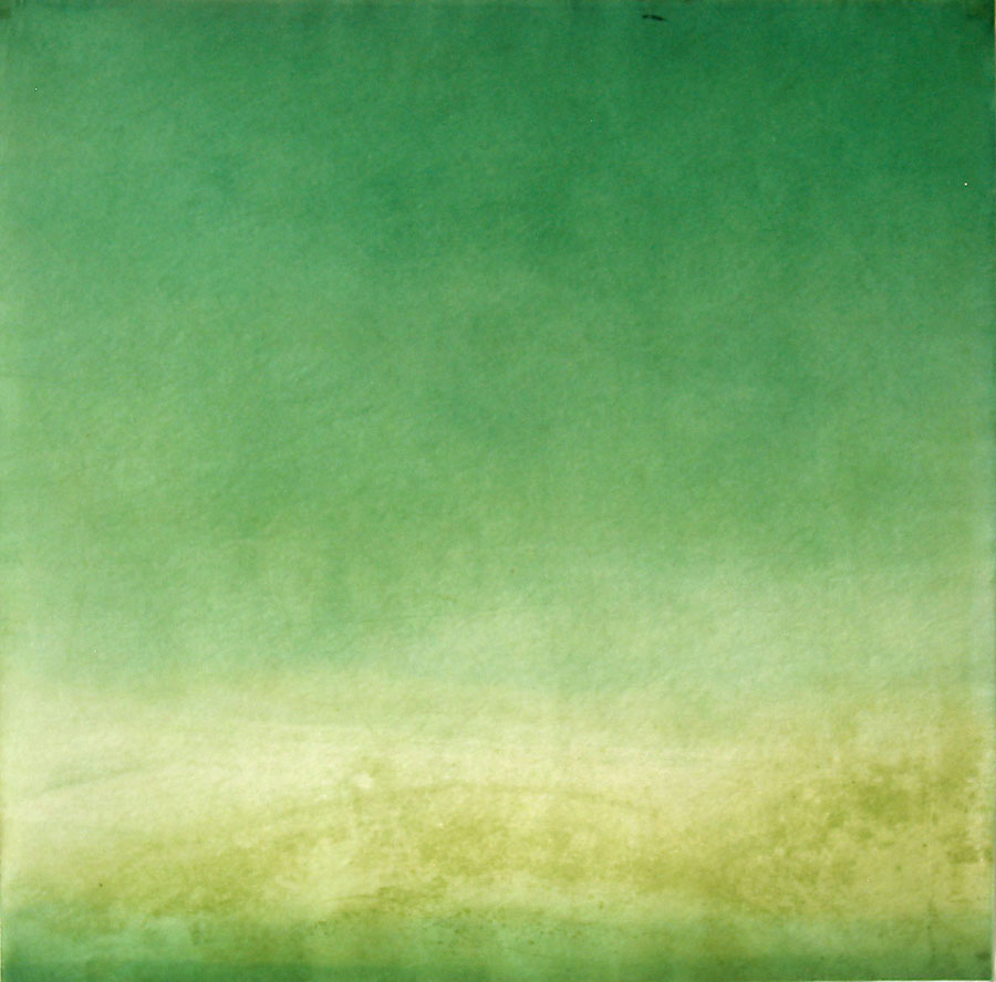 Spring/flow plate set at the source of a spring in 1999, Sky/constellation set up on a mountain facing the sky for 2000, and Earth/pool plate was set face down in a vernal pool. All three locations have a time-keeping quality in nature. Twelve prints were made from each plate one for every month of the year and the prints each formed one visual statement for the year: river, sky and pond.