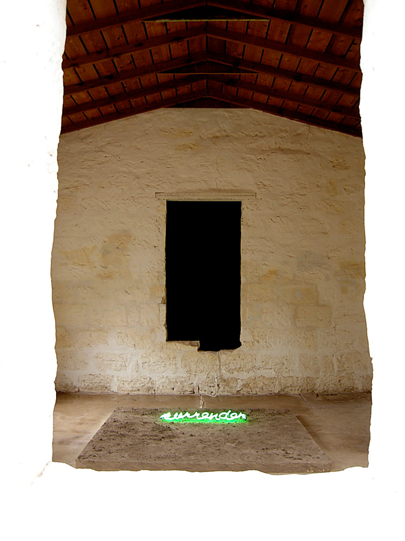 It began by visiting and collecting soil from five missions along the San Antonio river with students from various local colleges. The soil was levigated and purified and resulted in three distinct earth hues. The presence of the river was evoked with a neon green sign made in my neighborhood in Chinatown and the recorded sound of water from my building’s pipes in NYC. The title You/Me, San Antonio 2013 refers to the exchange of our experiential realities, mine from NYC in the aftermath of Hurricane Sandy, many residents with no light or heat for several weeks in downtown Manhattan and San Antonio with its layered ecological and cultural histories of the river and its peoples.