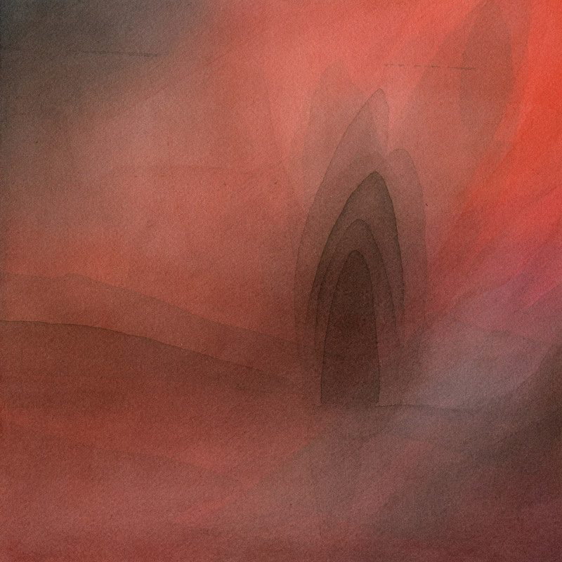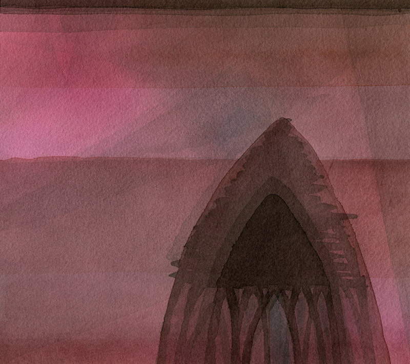 Atmospheric mists, luminous reflections surround emerging structures that evoke shrine, cage, and the rickety sometimes graceful dwelling that we live in.