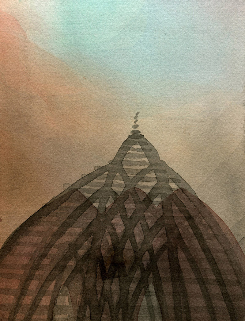 The works were created using watercolor and a dye made from various flowers given to me during an abhishek ceremony in Alandi, India. at the shrine of the 13th century saint Jnaneshwar Maharaj in 2010. The flower offerings were made by thousands of pilgrims, some who walked hundreds of miles to offer their devotion. The paintings came out of several months of work back in my Lower East Side studio, sifting through memories and impressions.